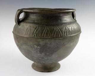 | Keywords: State Gifts Etruscan Pot.JPG en A black clay Etruscan Buchero pot with small handles on either side A border around the widest part of the pot is engraved in connected triangles This pot was found in Vulci Italy on February 19 1962 at an excavation It dates to 580/550 B C Gift of President Giovanni Leone of the Republic of Italy 1974 clay 12 H x 10 Dia Institution Gerald R Ford Presidential Museum http //www fordlibrarymuseum gov/museum/ArtifactCollectionSamples/Catagories/StateGifts/ClayPot html Clay Buchero pot accession number 1981 177a credit line Courtesy of the Gerald R Ford Presidential Museum Donation Date September 25 1974 Institution Institution Gerald R Ford Presidential Museum Gerald R Ford Presidential Library and Museum-cooperation PD-USGov Uploaded with UploadWizard Gifts of heads of state in the Gerald R Ford Presidential Museum Etruscan pottery in the United States Relations of Italy and the United States |