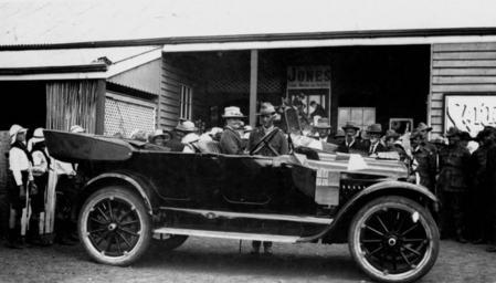 | Keywords: StateLibQld 1 108600 Arrival of Mrs Wheeler to unveil the School War Memorial at Springsure, ca. 1920.jpg en Arrival of Mrs Wheeler to unveil the School War Memorial at Springsure ca 1920 Annie Margaret Wheeler soldiers' welfare worker was born on 10 December 1867 at Saunders Station Dingo She was educated at a Rockhampton convent school and In 1896 married Henry Gaudiano Wheeler of Cooroorah Station near Blackwater After his death in 1903 she once again made Rockhampton her home In 1913 she took her only daughter Portia to England to complete her education At the outbreak of war in 1914 Mrs Wheeler worked as a probationer nurse in a hospital in Sussex Moving to London Mrs Wheeler endeavoured to contact all soldiers from Central Queensland She kept a detailed card index on them corresponded with servicemen on the battlefield forwarded packages and mail provided for their needs and supervised the care and comfort of those in hospital Mrs Wheeler's card indexes to Central Queensland soldiers are held by the John Oxley Library OM 82-67 Sign on shopfront in background reads Jones Tailor Mercer and Outfitter circa 1920 handle 10462/deriv/128684 Item is held by John Oxley Library State Library of Queensland PD-Australia StateLibQld-License War memorials in Queensland Automobiles of Australia Military people of Australia Photographs of flags of Australia 1910s in Australian society Springsure Queensland 1920 in Queensland Black and white photographs |