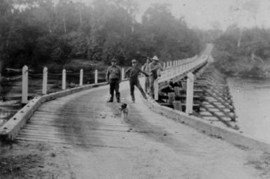 | Keywords: StateLibQld 1 109768 Abergowrie Bridge, Ingham, Queensland, ca. 1934.jpg en Abergowrie Bridge Ingham Queensland ca 1934 <br /> Wooden trestle bridge on the Herbert River <br /> Note that the coordinates given by the source for this image are of the town of Ingham not the bridge circa 1934 handle 10462/deriv/129332 Item is held by John Oxley Library State Library of Queensland PD-Australia StateLibQld-License Herbert River 1934 in Queensland Black and white photographs Abergowrie Queensland |