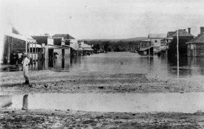 | Keywords: StateLibQld 1 112376 Flooded Albion Street, Warwick, 1887.jpg en Flooded Albion Street Warwick 1887 The second highest flood in the entire history of Warwick reached its peak at 3 30am on 22 January 1887 causing much damage and loss of life 'From the junction of the Albion and Fitzroy Streets and thence eastward to the old hospital the whole country was nothing but one mass of turbulent water threatening destruction in every roar which in itself was unpleasant to hear ' Information from the Warwick Examiner 26 January 1887 Left of the photograph businesses include Brown Bros shoe shop C C Clarke' confectioner's shop Right hand side of the photograph Lands Office and the Harp of Erin Hotel 1887 handle 10462/deriv/133024 Item is held by John Oxley Library State Library of Queensland PD-Australia StateLibQld-License Hotels and pubs in Warwick Queensland 1887 Queensland floods Floods in Warwick Queensland Streets in Warwick Queensland 1887 in Queensland Black and white photographs of Australia in the 1880s Shops in Warwick Queensland |
