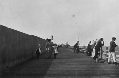 | Keywords: StateLibQld 1 115944 Walking and fishing on Shorncliffe Pier, ca. 1910.jpg en Walking and fishing on Shorncliffe Pier ca 1910 An enclosed swimming area is behind the corrugated iron fence on the left The pier had lights and a pavillion at the far end circa 1910 handle 10462/deriv/134771 Item is held by John Oxley Library State Library of Queensland PD-Australia StateLibQld-License Children's clothing of Australia Men's clothing Women's clothing Wharves and quays in Australia Shorncliffe Queensland 1910 in Australia Black and white photographs |