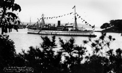 | Keywords: StateLibQld 1 116012 Herald (ship).jpg en Royal Navy survey ship HMS Herald in Farm Cove Sydney Harbour <br>Blyth Shipbuilding Dry Dock Co of Northumberland built her in 1918 as the 24 Class minesweeping sloop HMS Merry Hampton She was converted into a survey ship in 1923 In 1942 she was scuttled at Seletar Singapore The Imperial Japanese Navy raised her and renamed her Heiyo She was sunk by a mine off the coast of Borneo in 1944 1924 handle 10462/deriv/136225 Item is held by John Oxley Library State Library of Queensland PD-Australia StateLibQld-License 1924 in Australia Black and white photographs of ships Farm Cove New South Wales Herald ship 1918 DEFAULTSORT Herald 1918 |
