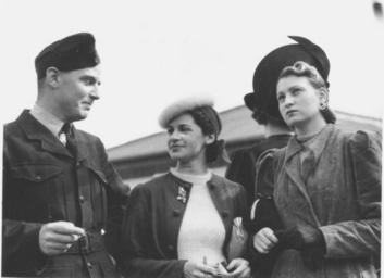 | Keywords: StateLibQld 1 124915 Mr. D. W. H. Kenyon, Joan Charters and June Shepherd at the Doomben Races, Brisbane, 1940.jpg en Mr D W H Kenyon Joan Charters and June Shepherd at the Doomben Races Brisbane 1940 Caption 'Trio who chatted together on the lawn yesterday afternoon at Doomben left to right Mr D W H Kenyon of the R A A F Joan Charters and June Shepherd ' Mr Kenyon appears to be wearing his R A A F uniform while Miss Charters is wearing a jacket over a cashmere sweater and a fur lined toque tied at the back of her head with a bow Miss Shepherd is wearing a long fur-like coat matched with a dramatic hat with an upturned brim 1940-08-03 handle 10462/deriv/81602 Copied and digitised from an image which appeared in the Sunday Truth 4 August 1940 p 18 Contributor s Truth Brisbane Qld PD-Australia StateLibQld-License Doomben Racecourse Women's clothing of Australia Men's clothing of Australia Military uniforms of Australia Headgear of Australia People with hats 1940 in Australia Hats Black and white photographs Images from Sunday Truth Fur fashion in 1940 Fur headgear Mole clothing |