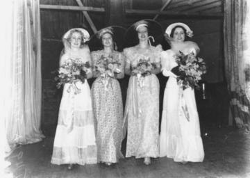 | Keywords: StateLibQld 1 125295 Bevy of bridesmaids, 1938.jpg supplied with photograph The women wear a variety of hats veils gloves gowns and shoes and are each holding bouquets 1938-08-10 handle 10462/deriv/82181 Copied and digitised from an image appearing in Sunday Truth 14 August 1938 p 43 Contributor s Sunday truth Brisbane Qld PD-Australia StateLibQld-License Bridesmaids of Australia Flower bouquets in Australia Women's clothing of Australia Groups of people in Australia Portraits of Queensland Weddings in Brisbane 1938 in Australia Black and white photographs Images from Sunday Truth |