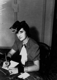 | Keywords: StateLibQld 1 126003 Mrs Prunella Marshall, Miss A.I.F., 1946.jpg en Mrs Prunella Marshall Miss A I F 1946 Mrs Marshall sits writing at a desk She wears a flower-adorned hat and a lace ruffle at her collar 1946-04-04 handle 10462/deriv/81273 Item is held by John Oxley Library State Library of Queensland Contributor s Truth Brisbane Qld PD-Australia StateLibQld-License Women's clothing of Australia Black and white photographs of females with hats Hair fashion in Australia 1946 in Brisbane Black and white photographs Jewellery of Australia Black and white photographic portraits of women Collars Flower-adorned hats Fashion in 1946 Images from Brisbane Truth |
