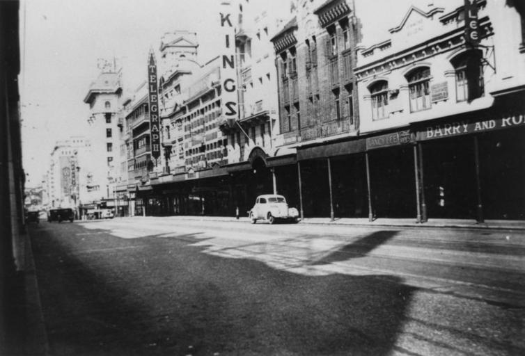 Keywords: StateLibQld 1 128213 Sunday morning in Queen Street, Brisbane, 1937.jpg en Sunday morning in Queen Street Brisbane 1937 View of the street is between George Street and Albert Street looking at the east face The Telegraph office and Kings signs are prominent One motor vehicle is parked in the street in the early morning sunshine 1937 handle 10462/deriv/82292 Item is held by John Oxley Library State Library of Queensland Kelk F W PD-Australia StateLibQld-License Vehicles in Brisbane Queen Street Brisbane 1937 in Brisbane Black and white photographs |
