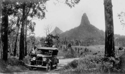 | Keywords: StateLibQld 1 132380 Driving through the Glasshouse Mountains District,1935.jpg en Driving through the Glasshouse Mountains District 1935 <br /> The driver of an Austin motor vehicle takes a break whilst travelling through the Glasshouse Mountains area Coonowrin more often called 'Crookneck' and Beerwah the highest of the mountains are in the background 1935 handle 10462/deriv/13016 Item is held by John Oxley Library State Library of Queensland PD-Australia StateLibQld-License Roads in Sunshine Coast Vehicles in Australia Views of Queensland 1935 in Queensland Black and white photographs Austin vehicles Mount Coonowrin |