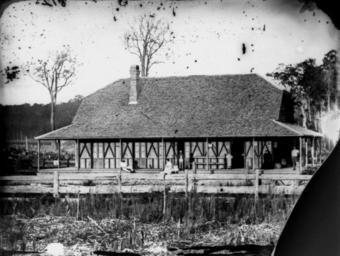 | Keywords: StateLibQld 1 134997 Thomas Hanlon's Ferry Hotel at Yatala, 1872.jpg en Thomas Hanlon's Ferry Hotel at Yatala 1872 The early part of William Boag's career was spent in Sydney where he was in partnership with portrait photographer Joseph Charles Milligan Images made by Boag are in the collection of the Campbelltown and Airds Historical Society Boag arrived in Queensland in November 1871 He travelled around the south-east along the foreshore of Moreton Bay and the township of Cleveland He then moved into the Logan and Albert area where he captured images of local crushing mills and sugar plantations While at Yatala he took on a partner John Henry Mills and by the end of 1872 both men were in Stanthorpe where they remained for several months producing views of the booming tin-mining settlement In July 1873 after stopping off in Warwick Boag and Mills extended their operations to Mackay where they remained until October 1875 During this time Boag made trips to St Lawrence and Cooktown however his movements after this are difficult to trace It is known that by mid 1876 he was at Copperfield and Clermont and in February 1878 he inserted a notice in the Peak Downs Telegram announcing that he was leaving for the west Then information ceases abruptly It is possible that Boag never reached his destination since his death certificate records that he died in 1878 at an unknown location This beautiful building with its graceful shingle roof was located south of the river bank at Hanlon's Crossing at Yatala and served the travellers using Cobb Company's Royal Mail coach which passed through the village of Yatala and then on to the Pimpama Inn and Nerang It was licensed in 1870 to Thomas Hanlon who may be the man sitting in front of the premises with his wife and child In May 1872 Hanlon played host to Boag and Mills during their visit to Yatala and in July of that year he became involved in a court case with Boag after the photographer failed to pay for his accomodation Hanlon later moved to Southport where in 1879 he established the Pacific Hotel on the Esplanade 1872 handle 10462/deriv/9283 Item is held by John Oxley Library State Library of Queensland Boag William 1838 -1878 PD-Australia StateLibQld-License Chimneys in Queensland Shingle roofs in Australia Vernacular architecture of Australia Yatala Queensland 1872 in Queensland Black and white photographs |