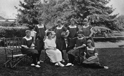 | Keywords: StateLibQld 1 153043 Glennie School netball team, Toowoomba, Queensland, 1924.jpg en Glennie School netball team Toowoomba Queensland 1924 <br /> Teacher posing with the 1924 girls' netball team The young women are arranged in a group around garden furniture in the school grounds 1924 handle 10462/deriv/117654 Item is held by John Oxley Library State Library of Queensland PD-Australia StateLibQld-License Outdoor benches Gardens in Queensland Netball in Queensland Benches in Australia Girls of Australia Educators from Australia Sports teams in Toowoomba 1924 in Australia Black and white photographs |
