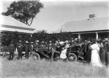 | Keywords: StateLibQld 1 154323 People admiring an open top touring car at a Pittsworth property, ca. 1915.jpg en People admiring an open top touring car at a Pittsworth property ca 1915 Social gathering at a Pittsworth property possibly a wedding circa 1915 handle 10462/deriv/116956 Item is held by John Oxley Library State Library of Queensland PD-Australia StateLibQld-License Men's clothing of Australia Corrugated iron Women's clothing of Australia Headgear of Australia People with hats Wedding ceremonies in Australia 1910s in Australian society Black and white photographs |