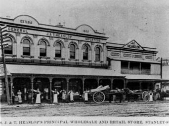 | Keywords: StateLibQld 1 15626 Heaslop's wholesale and retail store, Stanley Street, South Brisbane, 1900.jpg en Heaslop's wholesale and retail store Stanley Street South Brisbane 1900 <br /> Workers are posing outside the general store of J T Heaslop Several horsedrawn carts are being loaded in the street in front of the buildings 1900 handle 10462/deriv/453 Item is held by John Oxley Library State Library of Queensland Contributor s Queenslander Brisbane Qld 1866-1939 PD-Australia StateLibQld-License Horse-drawn carts in Australia Black and white photographs Stanley Street Brisbane Images from The Queenslander 1900 in Queensland Shops in South Brisbane |