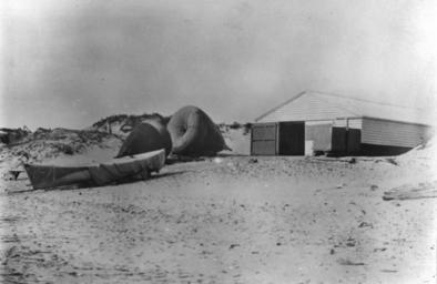 | Keywords: StateLibQld 1 157485 Boatshed at Bulwer, Moreton Island, 1906.jpg en Boatshed at Bulwer Moreton Island 1906 A boat is pulled up on the sand and two inflatable buoys are lying beside the boatshed 1906 handle 10462/deriv/4195 Item is held by John Oxley Library State Library of Queensland PD-Australia StateLibQld-License Black and white photographs 1906 in Queensland Boathouses in Australia Bulwer Queensland Buoys | ||||