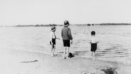 | Keywords: StateLibQld 1 167199 Three boys on a beach, 1910-1920.jpg en Three boys on a beach 1910-1920 Three boys standing on a beach 1910-1920 They wear hats shirts shorts and have bare feet Some mangrove suckers can be seen rising from the sand A further shoreline can be seen across the water between 191 -1920 handle 10462/deriv/112357 Item is held by John Oxley Library State Library of Queensland PD-Australia StateLibQld-License Black and white photographs of children Children's clothing of Australia Beaches of Australia Black and white photographs |