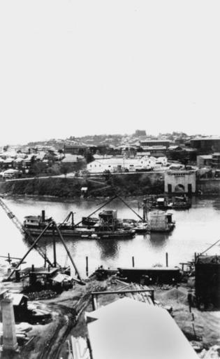 | Keywords: StateLibQld 1 181131 Barges on the Brisbane River during construction of the William Jolly Bridge, ca. 1930.jpg en Barges on the Brisbane River during construction of the William Jolly Bridge ca 1930 William Jolly Bridge during construction Photograph taken from the southern end looking north towards Roma Street St Brigid's Catholic Church at Red Hill can be seen rising from the horizon in the background The bridge opened to traffic on 30 March 1932 known then as the Grey Street Bridge 'Amongst the interesting features of the Bridge the length of which is 1634 feet are the three main arches over the river of 238 ft centres each rib consisting of structural steel fabricated under a sub-contract let by Messrs M R Hornibrook Ltd to Messrs Evans Deakin and Co Brisbane This steelwork was designed to support the concrete during construction without falsework ' Information taken from Souvenir official opening of Grey Street Bridge 1932 circa 1930 handle 10462/deriv/126887 Item is held by John Oxley Library State Library of Queensland PD-Australia StateLibQld-License Brisbane River Barges of Australia William Jolly Bridge construction 1930 in Australia Black and white photographs |