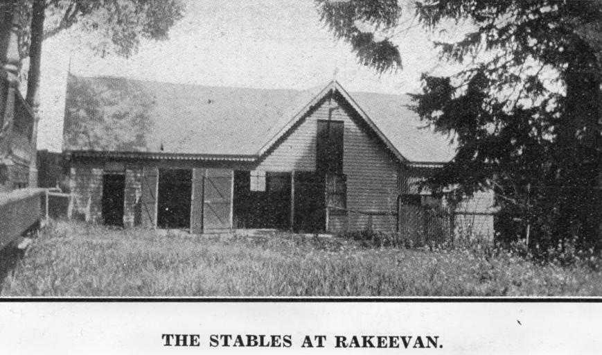 | Keywords: StateLibQld 1 195067 Stables at Rakeevan, in Bell Terrace, Graceville, 1931.jpg en Stables at Rakeevan in Bell Terrace Graceville 1931 Rakeevan is a two-storeyed rendered brick house with a weatherboard stables/coach-house overlooking the Brisbane River Originally called Verney Beth-Eden was erected in 1888 for newspaper proprietor Charles Hardie Buzacott The architect was Richard Gailey who in 1884 had designed the Courier Building for Buzacott In 1895 John Ferguson MLA a Rockhampton parliamentarian and a major shareholder in the Mt Morgan Mine company purchased the property which became the home of his daughter and son-in-law Mr A H Chambers who was the manager of the Union Bank and changed the name of the house to Rakeevan after his family home in Ireland 1931 handle 10462/deriv/115477 Copied and digitised from an image appearing in The Queenslander 17 September 1931 Contributor s Queenslander PD-Australia StateLibQld-License Fences in Queensland 1931 in Brisbane Black and white photographs Houses in Graceville Queensland Images from The Queenslander Richard Gailey buildings Rakeevan Stables in Queensland |