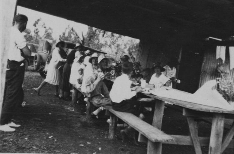Keywords: StateLibQld 1 195791 Social lunch at the Kingaroy Rifle Club, ca. 1930.jpg en Social lunch at the Kingaroy Rifle Club ca 1930 Wifes and families enjoying a picnic lunch on a competition day at the Kingaroy Rifle Club circa 1930 handle 10462/deriv/114869 Item is held by John Oxley Library State Library of Queensland PD-Australia StateLibQld-License Picnics in Australia Children of Queensland Women's clothing of Australia Kingaroy Black and white photographs |