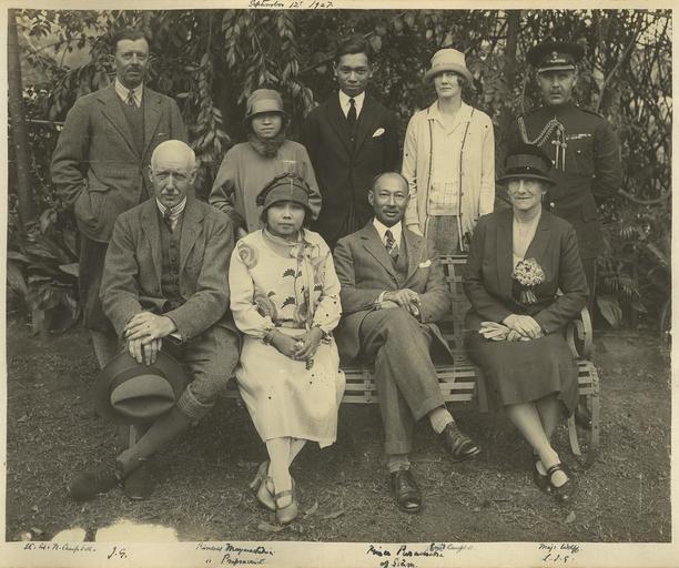 | Keywords: StateLibQld 1 233164 Official visit of members of the Royal Family of Thailand, Brisbane, 1927.jpg en Official visit of members of the Royal Family of Thailand Brisbane 1927 Back row standing left to right Lt Col Neil Campbell; Princess Mayura-Statra daughter of H R H Prince Purachatra; private secretary to H R H Prince Purachatra; Enid Campbell; Major Cecil Wolff Seated left to right Governor Sir John Goodwin; H R H Princess Purachatra ; Prince Purachatra of Siam Kambaeng Bejra Thailand and Lady Goodwin Sir John Goodwin was appointed governor of Queensland from 19 February 1927 until 7 April 1932 when he returned to England 1927-09-12 handle 10462/deriv/32332 Item is held by John Oxley Library State Library of Queensland PD-Australia StateLibQld-License Women's clothing of Australia Men's clothing of Australia Military uniforms of Australia 1927 in Brisbane Military officers of Australia John Goodwin governor Royal visits to Brisbane 1927 portrait photographs Black and white photographs Scientists in 1927 Purachatra Jayakara |