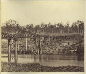 | Keywords: StateLibQld 1 234292 Mary River Bridge on the Maryborough railway line.jpg en Mary River Bridge on the Maryborough railway line Iron bridge crossing over the Mary River The bridge rises about 20 feet above the river 1882 handle 10462/deriv/37506 Item is held by John Oxley Library State Library of Queensland PD-Australia StateLibQld-License Railway bridges in Queensland Girders Railway lines in Australia Mary River Queensland 1882 in Queensland Black and white photographs Iron truss bridges in Australia Iron truss railway bridges Maryborough railway line |