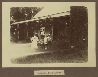 | Keywords: StateLibQld 1 235207 Residents of Headington Hill Homestead on the Darling Downs.jpg en Residents of Headington Hill Homestead on the Darling Downs Two women in the height of fashion with large hats decorated with ribbons and flowers Two small children are standing to one side of the chair a boy and a girl probably aged around five Images featured in the S E C Views from Downs Queensland circa 1895 handle 10462/deriv/39682 Item is held by John Oxley Library State Library of Queensland PD-Australia StateLibQld-License Sheep and cattle stations in Queensland Children's clothing of Australia Girls of Australia Boys of Australia Women's clothing of Australia Black and white photographs |