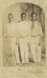 | Keywords: StateLibQld 1 235414 Three young Kanaka cane plantation workers from the Herbert River area, near Ingham, ca. 1881.jpg en Three young Kanaka cane plantation workers from the Herbert River area near Ingham ca 1881 circa 1881 handle 10462/deriv/39376 Item is held by John Oxley Library State Library of Queensland PD-Australia StateLibQld-License Farmers from Australia Manual workers of Australia Sugar cane in Australia Men's clothing of Australia South Sea Islanders Ingham Queensland Black and white photographs |
