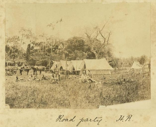 | Keywords: StateLibQld 1 235422 Travelling road party at their camp site, Herbert River, near Ingham, ca. 1881.jpg en Travelling road party at their camp site Herbert River near Ingham ca 1881 circa 1881 handle 10462/deriv/39382 Item is held by John Oxley Library State Library of Queensland PD-Australia StateLibQld-License Campsites in Australia Tents in Australia Horses of Queensland Horse-drawn vehicles in Australia Men of Australia Men's clothing Ingham Queensland Black and white photographs | ||||