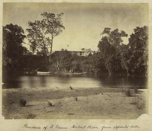 | Keywords: StateLibQld 1 235442 View of the Neame residence from the Herbert River, Ingham, ca. 1881.jpg en View of the Neame residence from the Herbert River Ingham ca 1881 Frank Neame was the owner of the Macnade Sugar Plantation at the time of this photograph This property was the homestead on the plantation See also APO-022-0001-0002 circa 1881 handle 10462/deriv/39443 Item is held by John Oxley Library State Library of Queensland PD-Australia StateLibQld-License Homesteads in Queensland Herbert River Boats in Australia River banks Houses in Ingham 1881 in Queensland Black and white photographs Macnade Sugar Plantation |