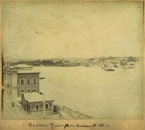 | Keywords: StateLibQld 1 256180 Looking across the flooded Brisbane River towards South Brisbane, 1893.jpg en Looking across the flooded Brisbane River towards South Brisbane 1893 February 4 1893 saw the highest floods on record in Brisbane and elsewhere; 6ft water in Edward Street at the Courier Buildings hundreds of houses washed down river trees uprooted and shipping torn from moorings The Indooroopilly Bridge was washed away and the northern end of Victoria Bridge disappeared Floodwaters rose at Brisbane to 23 feet 9 inches above mean spring tide and 10 feet over the previous highest flood mark 1890 A second flood almost reaching the level of the first was experienced on the 19th a lesser one having prevailed on the 13th South Brisbane was without fresh water for some days and the whole of Brisbane was practically in darkness at night A very large relief fund 70 000 pounds was established subscriptions in money and in kind arriving from England as well as from the other colonies Information taken from Queensland State Archives database 2004 - 2006 retrieved 11 January 2006 from <http //www archives qld gov au/exhibitions/virtualexhibition/images/1893introduction asp> View is from William Street The Queensland Museum building is featured on the left of the photograph 1893 handle 10462/deriv/122545 Item is held by John Oxley Library State Library of Queensland PD-Australia StateLibQld-License Brisbane River 1893 Brisbane flood Black and white photographs Floods in South Brisbane William Street Brisbane |