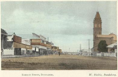 | Keywords: StateLibQld 1 257864 Barolin Street, Bundaberg, ca. 1914.jpg en Barolin Street Bundaberg ca 1914 Bundaberg is situated at the southern tip of the Great Barrier Reef Four hours drive north from Brisbane Bundaberg is located in the heart of a rich sugar and horticultural belt Bundaberg is identified with the locally manufactured Austoft Cane harvesters and famous Bundaberg Rum This photograph is part of a hand coloured publication titled 'Souvenir of Bundaberg' published by W Blaikie Bundaberg ca 1914 circa 1914 handle 10462/deriv/34607 Item is held by John Oxley Library State Library of Queensland Blaikie W PD-Australia StateLibQld-License Streets in Bundaberg 1914 in Queensland Black and white photographs Australia on photochrome prints Souvenir of Bundaberg |