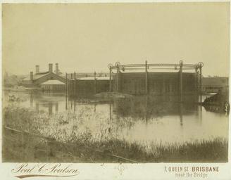 | Keywords: StateLibQld 1 299579 View of the South Brisbane Gas Works surrounded by flood water, 1890.jpg en View of the South Brisbane Gas Works surrounded by flood water 1890 The gas works were located near Davies Park along Montague Road South Brisbane 1890 handle 10462/deriv/151670 Item is held by John Oxley Library State Library of Queensland Poulsen Paul C PD-Australia StateLibQld-License Gasworks 1890 Brisbane flood Floods in South Brisbane 1890 in Queensland Black and white photographs West End Gasworks |