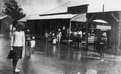 | Keywords: StateLibQld 1 42419 James Teague's tailor shop on Chinchilla Street during the floods of 1921-22.jpg en James Teague's tailor shop on Chinchilla Street during the floods of 1921-22 Women and children in summer clothes and hats paddle across the road outside Teague's tailor shop Chinchilla is a thriving town in the western Darling Downs 295km NW of Brisbane on the Warrego Highway Ludwig Leichhardt named the area in 1844 after jinchilla the local Aboriginal name for cypress pines Grain-growing is the traditional industry as well as cattle sheep pigs timber and more recently grapes cotton and watermelon The cactoblastis insect was introduced to eradicate the prickly pear cactus infestation and the Cactoblastis Memorial Hall has been erected at Boonarga 8km east of Chinchilla Explore Australia 2003 Penguin Books Australia Ltd 2002 handle 10462/deriv/144238 Item is held by John Oxley Library State Library of Queensland PD-Australia StateLibQld-License Children's clothing of Australia Youth Floods in Queensland Floods in Chinchilla Black and white photographs |