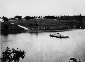 | Keywords: StateLibQld 1 44115 Brisbane River punt crossing from Chelmer to Indooroopilly in 1906.jpg en Brisbane River punt crossing from Chelmer to Indooroopilly in 1906 Ferry crossing the Brisbane River from Chelmer to Indooroopilly A horse and rider plus several passengers are being transported on the punt In the background there is cleared pasture land and some houses dotted along the hill 1906 handle 10462/deriv/145233 Item is held by John Oxley Library State Library of Queensland PD-Australia StateLibQld-License Cable ferries in Queensland Brisbane River Chelmer Queensland 1906 in Queensland Black and white photographs Ferries in Brisbane |