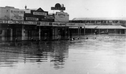 | Keywords: StateLibQld 1 46415 Chinchilla Street during the 1954 floods.jpg en Chinchilla Street during the 1954 floods Floods in the centre of Chinchilla In the background is a rowing boat with townspeople Chinchilla is a thriving town in the western Darling Downs 295km NW of Brisbane on the Warrego Highway Ludwig Leichhardt named the area in 1844 after jinchilla the local Aboriginal name for cypress pines Grain-growing is the traditional industry as well as cattle sheep pigs timber and more recently grapes cotton and watermelon The cactoblastis insect was introduced to eradicate the prickly pear cactus infestation and the Cactoblastis Memorial Hall has been erected at Boonarga 8km east of Chinchilla Information taken from Explore Australia 2003 Penguin Books Australia Ltd 2002 1954 handle 10462/deriv/54708 Item is held by John Oxley Library State Library of Queensland PD-Australia StateLibQld-License Floods in Queensland Shops in Queensland Boats in Australia Floods in Chinchilla 1954 in Queensland Black and white photographs of Australia in the 1950s 1954 floods |