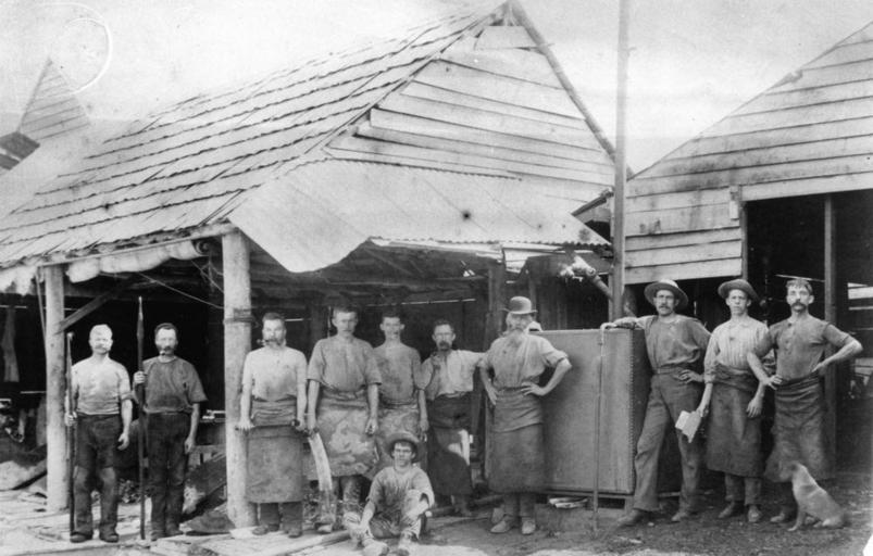 View Original:StateLibQld 1 47132 Tannery workers posing outside the tanning shed at Kelvin Grove, ca. 1890.jpg (1000x638)