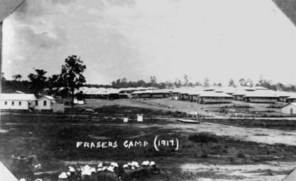 | Keywords: StateLibQld 1 53572 Fraser's Camp, part of the Enoggera Military Camp, 1917.jpg en Fraser's Camp part of the Enoggera Military Camp 1917 1917 handle 10462/deriv/60864 Item is held by John Oxley Library State Library of Queensland PD-Australia StateLibQld-License Military buildings in Australia Barracks in Australia World War I home front in Brisbane Enoggera Queensland 1917 in Australia Black and white photographs | ||||
