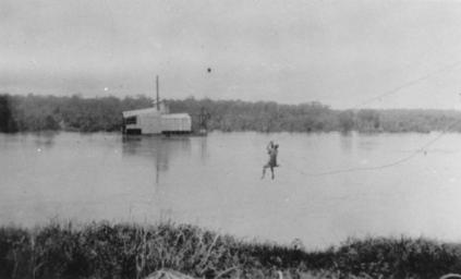 | Keywords: StateLibQld 1 70879 Gold mining dredge on the Palmer River in Queensland.jpg en Gold mining dredge on the Palmer River in Queensland Flying fox in operation for times of high water and flood handle 10462/deriv/86197 Item is held by John Oxley Library State Library of Queensland PD-Australia StateLibQld-License Rivers of Queensland Gold dredges in Australia Black and white photographs Palmer River goldfields Images from the State Library of Queensland | ||||