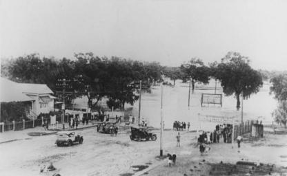 | Keywords: StateLibQld 1 83011 Warrego River in flood at Charleville, 1934.jpg en Warrego River in flood at Charleville 1934 People standing and observing the Warrego River Queensland in flood after heavy rain from a storm in 1934 The water level has reached a picket fence that encloses a timber residence Information taken from The Charleville Times 2 February 1934 1934 handle 10462/deriv/143680 Item is held by John Oxley Library State Library of Queensland Contributor s Charleville Historical Society PD-Australia StateLibQld-License Vehicles in Australia Floods in Charleville Queensland 1934 in Queensland Black and white photographs |