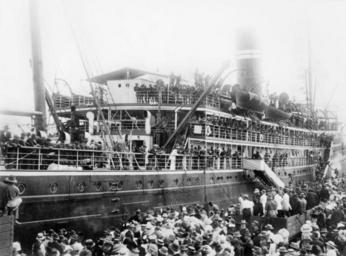 | Keywords: StateLibQld 1 85744 First troops leaving Townsville, Queensland, bound for Thursday Island, 1914.jpg en First troops leaving Townsville Queensland bound for Thursday Island 1914 <br /> First troops leaving Townsville per the troopship Kanowna under sealed orders The group was part of the New Guinea Expeditionary Forces dispatched from Australia It carried 1 000 troops including 500 infantry and went from Townsville to Thurdsay Island then on to Port Moresby 1914-08-03 handle 10462/deriv/62410 Item is held by John Oxley Library State Library of Queensland PD-Australia StateLibQld-License Wharves in Townsville Lifeboats in Australia Military people of Australia Military uniforms of Australia Australian Army Kanowna ship 1902 Ships in Townsville 1914 in Queensland Black and white photographs Australia in World War I |