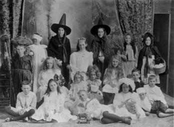 | Keywords: StateLibQld 1 85964 Costume day at St. James' Presbyterian Church Sunday School, Bowen, ca. 1912.jpg en Costume day at St James' Presbyterian Church Sunday School Bowen ca 1912 Portrait of the nursery rhyme costume group at St James' Presbyterian Church Sunday School at Bowen around 1912 Some of the characters appear to be Cinderella Little Red Riding Hood Jack and Jill and Little Miss Muffet circa 1912 handle 10462/deriv/62667 Item is held by John Oxley Library State Library of Queensland PD-Australia StateLibQld-License Children of Queensland Formal clothing in Australia Sunday school in Australia Bowen Queensland Black and white photographs Cinderella Little Red Riding Hood Jack and Jill Little Miss Muffet |