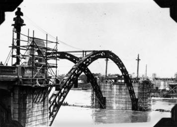 | Keywords: StateLibQld 1 88568 Steel structures designed to support the concrete arches of the William Jolly Bridge, Brisbane, photographed during the 1931 flood.jpg en Steel structures designed to support the concrete arches of the William Jolly Bridge Brisbane photographed during the 1931 flood Construction of the William Jolly Bridge which linked North Quay on the north bank of the Brisbane River to Grey Street on the south bank photographed during the 1931 flood The bridge opened to traffic on 30 March 1932 known then as the Grey Street Bridge 'Amongst the interesting features of the Bridge the length of which is 1634 feet are the three main arches over the river of 238 ft centres each rib consisting of structural steel fabricated under a sub-contract let by Messrs M R Hornibrook Ltd to Messrs Evans Deakin and Co Brisbane This steelwork was designed to support the concrete during construction without falsework ' Information taken from Souvenir official opening of Grey Street Bridge 1932 1931-02-07 handle 10462/deriv/64450 Item is held by John Oxley Library State Library of Queensland PD-Australia StateLibQld-License William Jolly Bridge construction 1931 Brisbane flood Black and white photographs of Brisbane Black and white photographs of bridges |