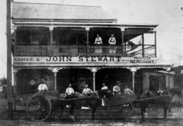 | Keywords: StateLibQld 1 95796 John Stewart's grocery store at Annerley around 1913.jpg en John Stewart's grocery store at Annerley around 1913 Staff and customers outside John Stewart's grocery and provisions store on the corner of Ipswich Road and Clive Street around 1913 1913 handle 10462/deriv/73533 Item is held by John Oxley Library State Library of Queensland PD-Australia StateLibQld-License Shops in Queensland Grocery stores in Australia Verandas on Queensland shops Horse-drawn carts in Australia Annerley Queensland Black and white photographs |
