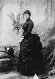 | Keywords: StateLibQld 1 96400 Woman wearing a dress with a large bustle, ca. 1887.jpg en Woman wearing a dress with a large bustle ca 1887 Susan Lawrence from Ipswich wearing a dark coloured dress with many folds of fabric pulled up over a large bustle at the rear A hat rests on the arm of the chair in front of her Her hair is set in tight tiny curls at the front and pulled into a bun at the rear The dress is adorned with bows along the centre front circa 1887 handle 10462/deriv/73925 Item is held by John Oxley Library State Library of Queensland PD-Australia StateLibQld-License Women's clothing of Australia Dresses in Australia Headgear of Australia People with hats Hair fashion in Australia 1887 in Queensland Black and white photographs |