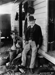 | Keywords: StateLibQld 2 102386 Charles Gillim Senior, Spring Creek, Queensland, 1897.jpg en Mr Charles Gillim Senior Spring Creek Queensland 1897 Portrait of Mr Charles Gillim Senior standing beside the timber wall of a shed at Spring Creek Various pieces of saddlery are hanging from the wall behind him He is dressed in a dark jacket vest long pants and a hat 1897 handle 10462/deriv/69220 Item is held by John Oxley Library State Library of Queensland PD-Australia StateLibQld-License Men's clothing of Australia 1897 in Queensland Black and white photographs |