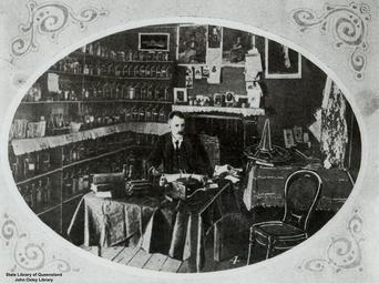 | Keywords: StateLibQld 2 112224 Doctor's surgery, far West Queensland, 1907.jpg en Doctor's surgery far West Queensland 1907 Doctor sitting behind a desk in a surgery in far west Queensland 1907 The surgery room has floor to ceiling shelves with bottles of mixtures and medical apparatus 1907 handle 10462/deriv/134154 Copied and digitised from a photograph in the Australasian 3 August 1907 page 291 PD-Australia StateLibQld-License Black and white photographs Physicians from Australia 1907 in Australia |