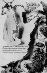 | Keywords: StateLibQld 2 119752 Queensland Jubilee 1859-1909 postcard including the allegorical figure of Britannia^ and the outline of Queensland's coast.jpg en Queensland Jubilee 1859-1909 postcard including the allegorical figure of Britannia and the outline of Queensland's coast Represented is tropical fruit flora wool and stock and the state badge the imperial crown superimposed on a Maltese cross A poem is also included Queensland's an apt and happy name/As mortal wisdom well could frame /Pre-eminent to-day she stands/A land of queens; a queen of lands Postcard is number 104 in the Curlew Series 1909 handle 10462/deriv/109535 Copied and digitised from an original Falk and Wilkins colour postcard PD-Australia StateLibQld-License Black and white photographs 1909 in Australia Anniversaries Queensland Images of postcards from the State Library of Queensland |
