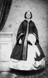 | Keywords: StateLibQld 2 123366 Young woman wearing a long dress, jacket and crinoline, 1860-1870.jpg en Young woman wearing a long dress jacket and crinoline 1860-1870 Young woman wearing a light coloured striped dress with a long overcoat The coat has long wide sleeves and is edged with a strip of contrasting quilted fabric The skirt of the dress is given a balloon-like appearance with the use of a crinoline underskirt The woman appears to be holding a hat in one hand between 1860 1870 handle 10462/deriv/3316 Item is held by John Oxley Library State Library of Queensland PD-Australia StateLibQld-License Women's clothing of Australia Black and white photographs Dresses in Australia Queensland in the 1860s Coats Black and white photographs of women wearing coats Quilted clothing |