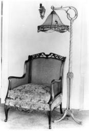 | Keywords: StateLibQld 2 136966 Lamp and arm chair built by Ed. Rosenstengel, 524 Brunswick Street, Fortitude Valley, Brisbane.jpg en Lamp and arm chair built by Ed Rosenstengel 524 Brunswick Street Fortitude Valley Brisbane Rosenstengel operated out of premises located at 524 Brunswick Street Fortitude Valley from 1922 to 1958 Lamp and chair are part of a suite made for the visit of the Duke of Gloucester to Parliament House in Queensland The chair has a carved wooden frame and cane inserts in the back and arms The seat and the separate cushion are both upholstered in a Genoa velvet 1934 handle 10462/deriv/10368 Item is held by John Oxley Library State Library of Queensland PD-Australia StateLibQld-License Black and white photographs Upholstered armchairs Chairs in Australia Lighting in Australia Floor lamps 1934 visit to Brisbane by Henry Duke of Gloucester |