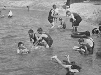 | Keywords: StateLibQld 2 153991 Children playing in the ocean near the shoreline, ca. 1933.jpg en Children playing in the ocean near the shoreline ca 1933 There are two adults present along with some toddlers and young children Some children are playing with beach balls There is a toy sailing boat and an inflated inner tube A boy is sitting on a bodyboard circa 1933 handle 10462/deriv/116977 The Queenslander 12 January 1933 Contributor s Queenslander Brisbane Qld 1866-1939 PD-Australia StateLibQld-License Beach umbrellas in Australia Black and white photographs Swimwear of Australia Beaches of Queensland People with beach balls Male swimwear Toy boats 1930s swimwear Images from The Queenslander |
