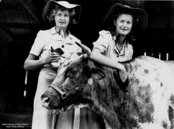 | Keywords: StateLibQld 2 161943 Two young women preparing a bull for the Grand Parade of Prize Stock, Mt. Alford, Queensland, 1944.jpg supplied with photograph Two young women prepare a bull for entry in the Grand Parade of Prize Stock Mt Alford One is polishing its horns the other brushing its coat 1944 handle 10462/deriv/110073 Copied and digitised from an original photograph held by the Fassifern and District Historical Society PD-Australia StateLibQld-License Black and white photographs Mount Alford Queensland Farms in Queensland Girls of Australia 1944 in Australia Cattle shows Bulls |