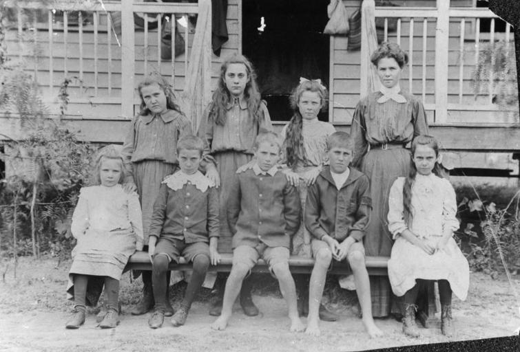 Keywords: StateLibQld 2 177635 Serious faced group of school children at Lower Yarraman in 1908.jpg en Serious faced group of school children at Lower Yarraman in 1908 The teacher stands beside her class of boys and girls who are lined up along a school bench The boys are dressed in suits with either lace or sailor collars Two of the boys are barefoot The girls wear mid length cotton dresses dark stockings and boots or 'Mary Jane' shoes 1908 handle 10462/deriv/101974 Item is held by John Oxley Library State Library of Queensland PD-Australia StateLibQld-License Children's clothing of Australia School children of Queensland Women's clothing of Australia Black and white photographs Yarraman Queensland 1908 in Australia