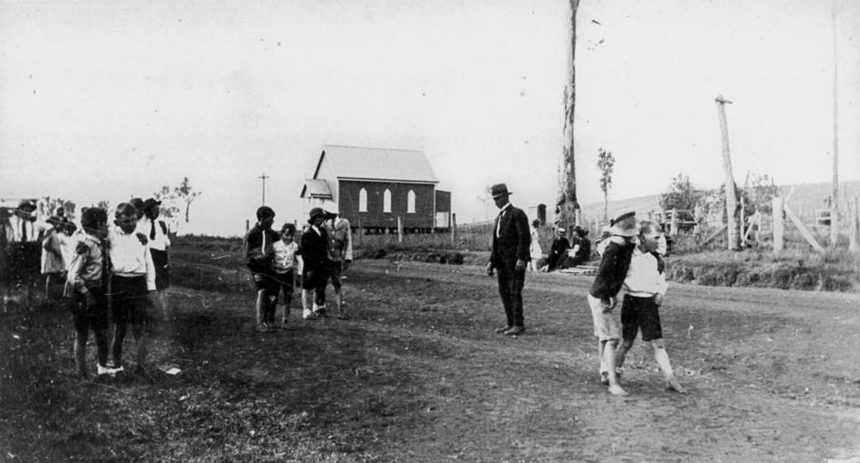 | Keywords: StateLibQld 2 178415 Boys taking part in a three-legged race near St. David's Church, Boonara, 1920s.jpg en Boys taking part in a three-legged race near St David's Church Boonara 1920s <br /> Boonara is now known as Goomeri Boonara is the name of the pastoral station that was resumed for closer settlement in 1912 http //www queenslandplaces com au/goomeri between 1920 1930 handle 10462/deriv/101807 Item is held by John Oxley Library State Library of Queensland PD-Australia StateLibQld-License Children's clothing of Australia Black and white photographs Churches in Queensland Children of Queensland Three-legged race Roads in Gympie Goomeri Queensland 1920 in Australia |